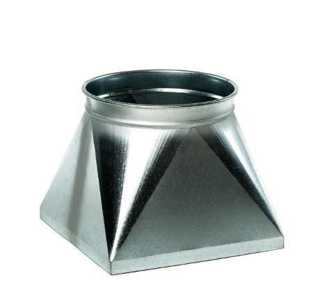Concentric Rectangular to Round connects a rectangular air distribution channel to another circular channel having the same center